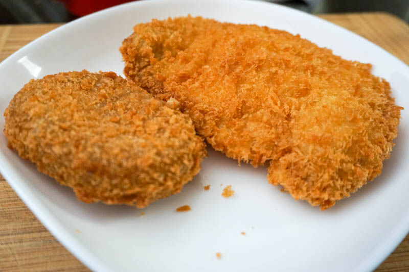 続いてこちらはコロッケとヒレカツを並べたもの。ヒレカツとトンカツは精肉店ならではの大きさでおすすめとのことだったので、ヒレカツをチョイス!