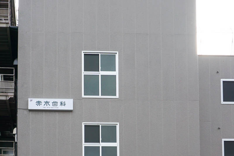 「赤木歯科」にあった貼紙によると、建物の老朽化に伴う建替えのため11月30日をもって仮診療所へ一時移転しているとのこと。