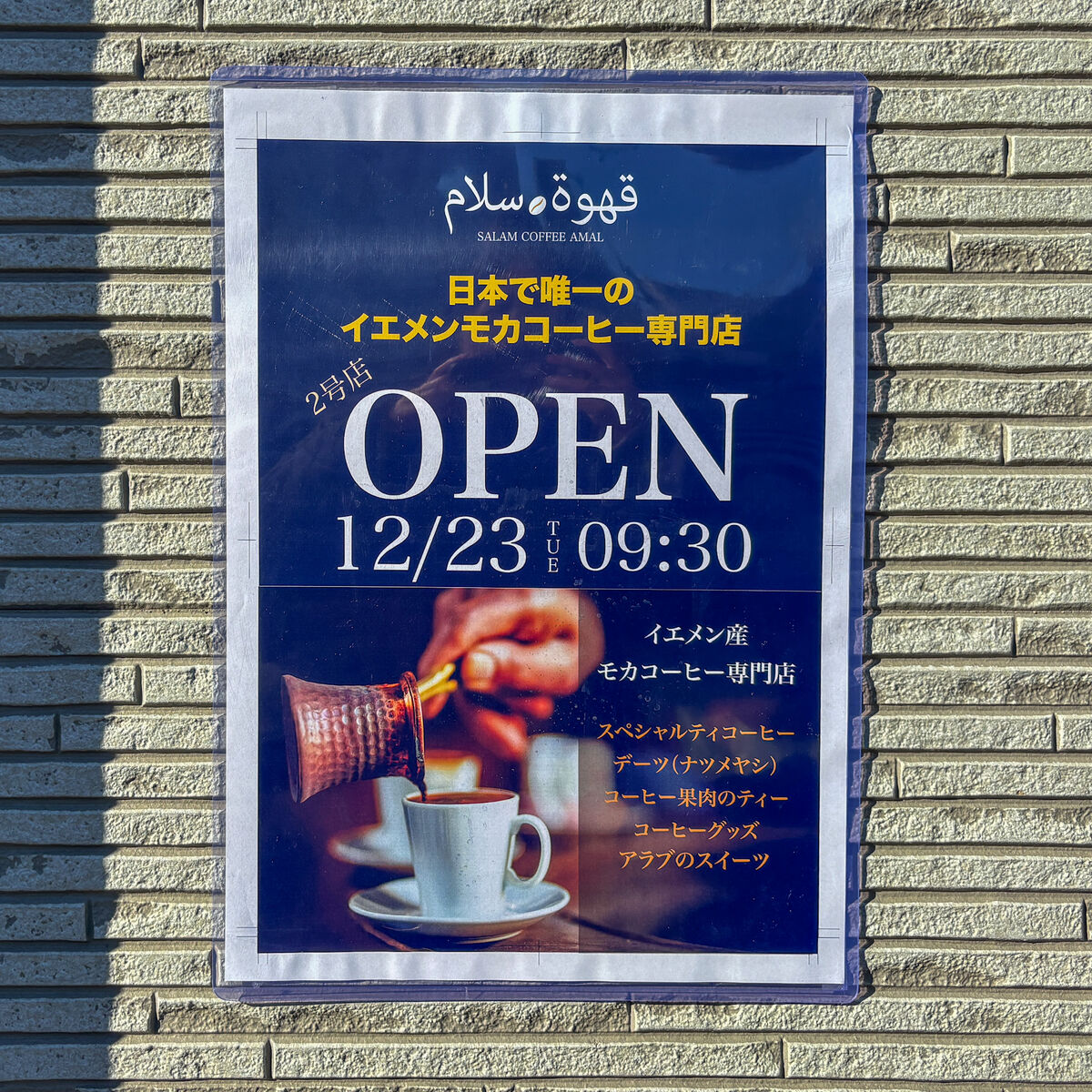 「SALAM COFFEE」は、イエメンモカコーヒー専門店。12月23日にオープンしました。