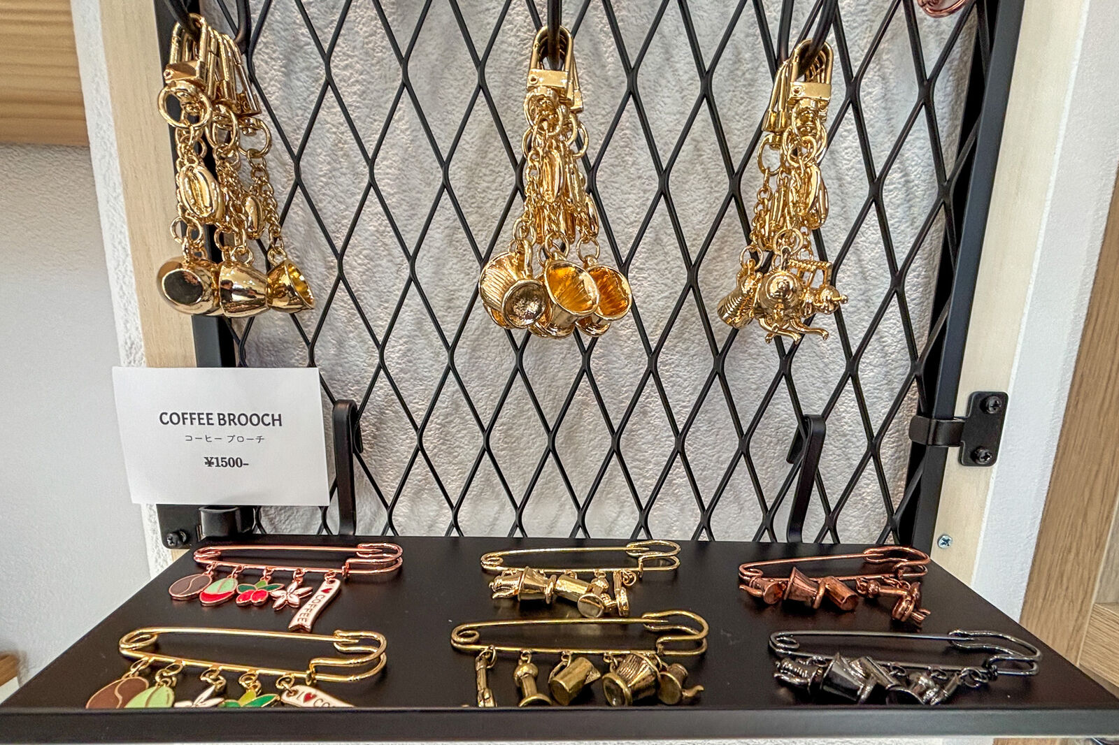 また可愛らしいコーヒーのブローチやキーホルダーなども購入することができます。
