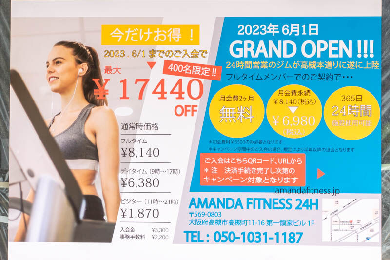 高槻本通りにジム「AMANDA FITNESS 24H」つくってる。6月1日オープン