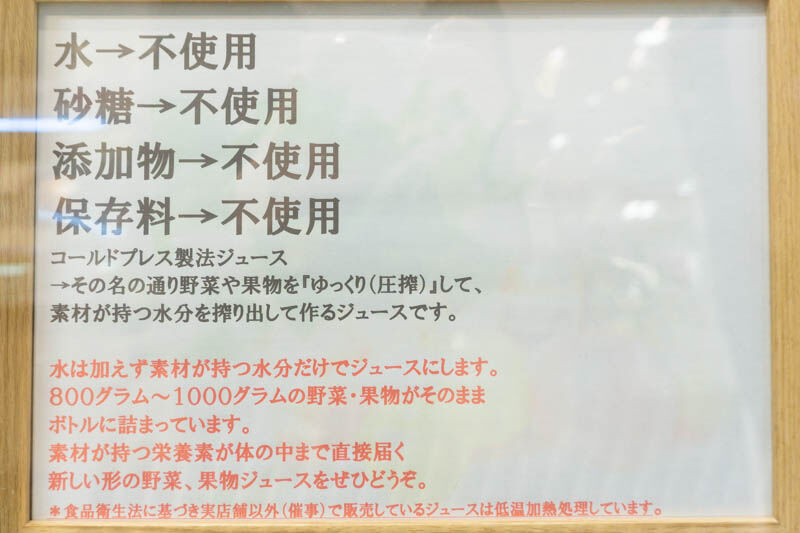 こちらはコールドプレスジュース。松坂屋店はパウチタイプでの販売だそう。