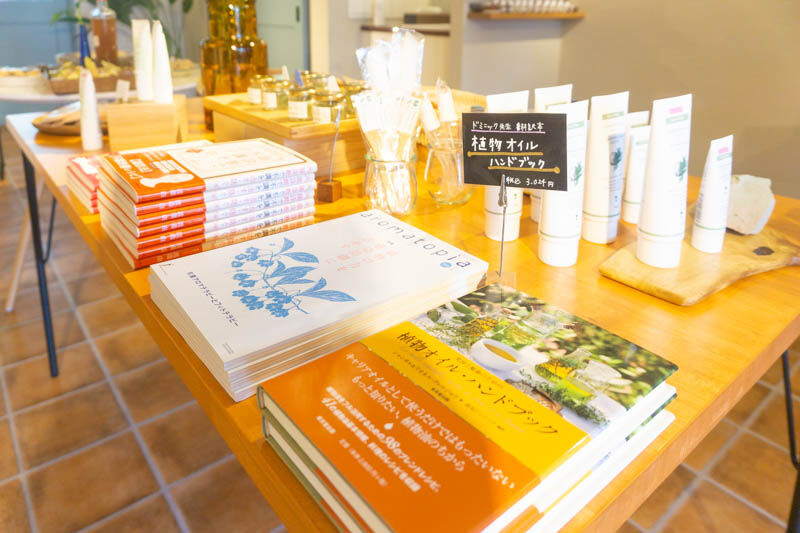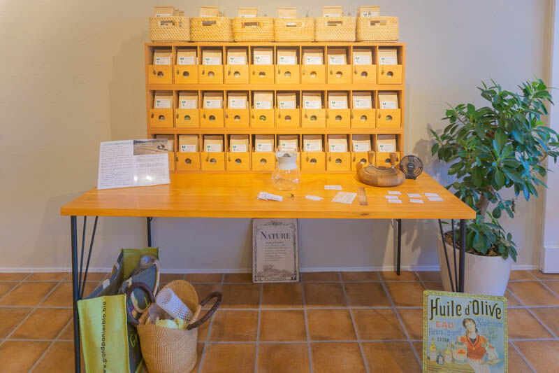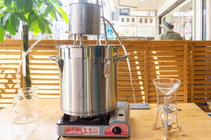 店先では、ちょうどハーブウォーターを作っていて、とても落ち着くいい香りがしました。左は業務用、右は家庭用だそうです。