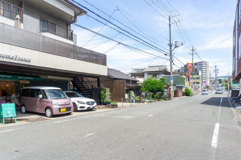 反対方向に行くと府道67号線と府道79号線が交わる別所交差点で、すき家やケアーズ薬局、BOOKOFFなどがあります。