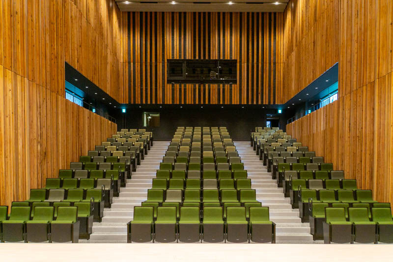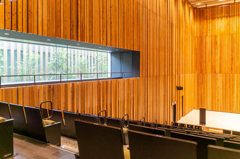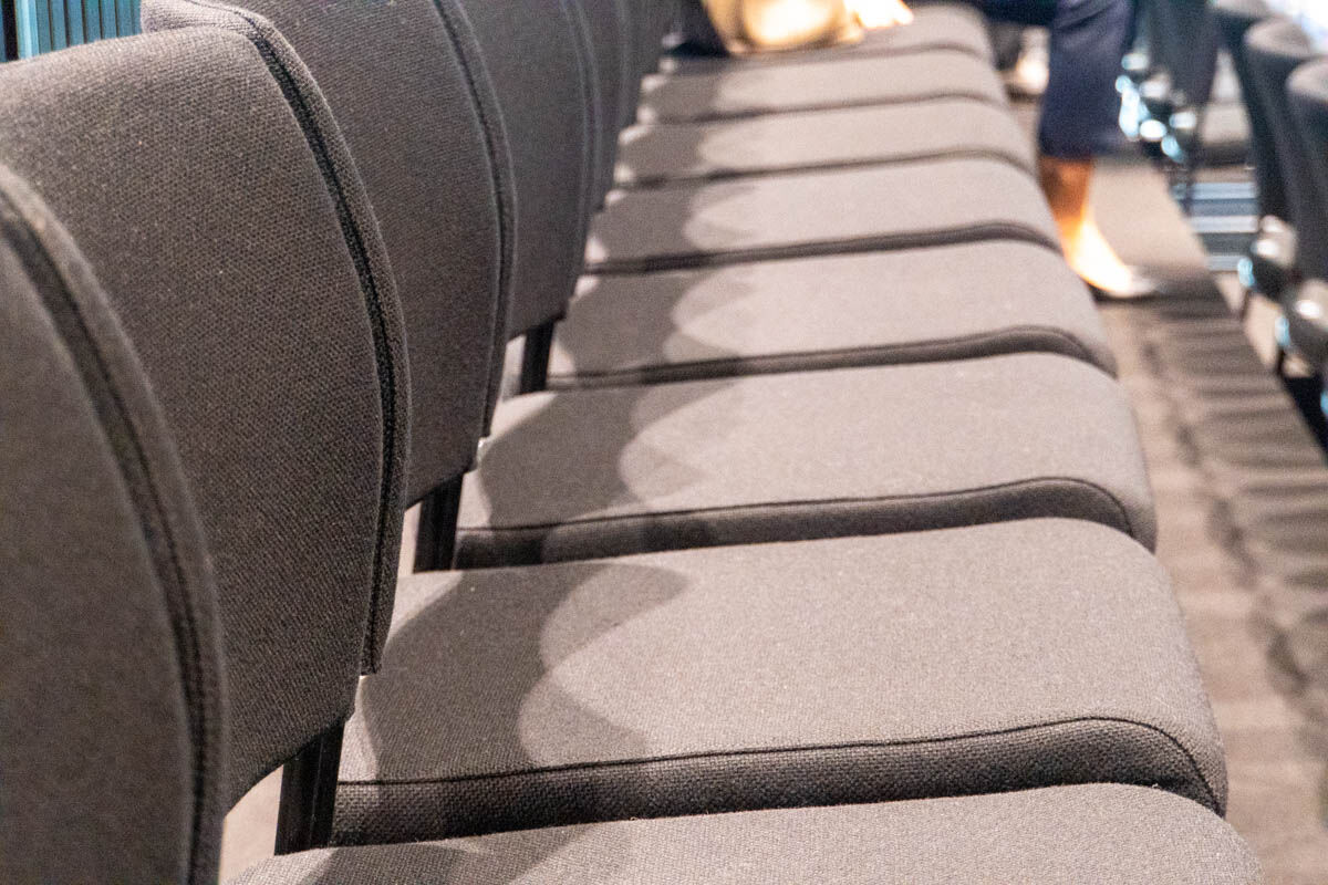 ひとつひとつの席もこだわっていて、長時間座ってもしんどくないような設計なんだそう。5色の茶色をグラデーションになるように配置していて、舞台側になるほど色が濃くなります。
