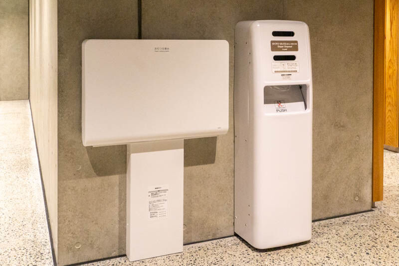 女性用トイレには、オムツ替えの台とおむつ専用のゴミ箱が設置されていました。