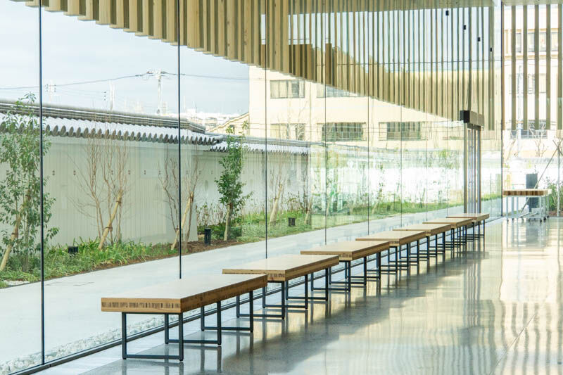 高槻城があったという歴史と、現代のモダンなデザインが融合した素敵な館内。カフェがあったり、トイレが充実していたりと、公園利用時にあったら嬉しい設備もばっちり。