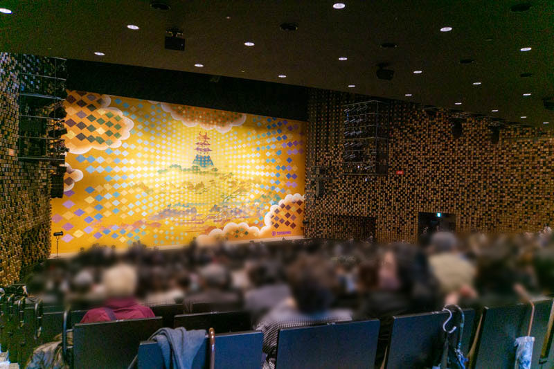 よくみると緞帳の柄には、将棋の駒の形がところどころに紛れ込んでいるんだとか。「将棋のまち高槻」らしいですね。