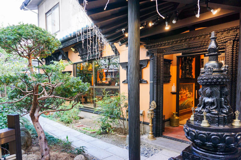 まず入ってすぐにネパールから取り寄せたというネパールらしい門とか置物とか。