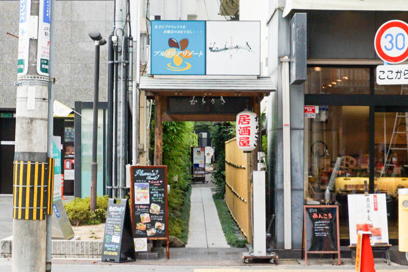 ここの小路を入っていったところ。通路奥には記事にした「プルメリアリゾート」、居酒屋からさきが同じ敷地にあります。