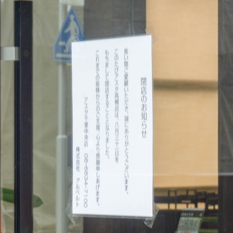 高槻町の美容室「asta(アスタ)」が閉店してる