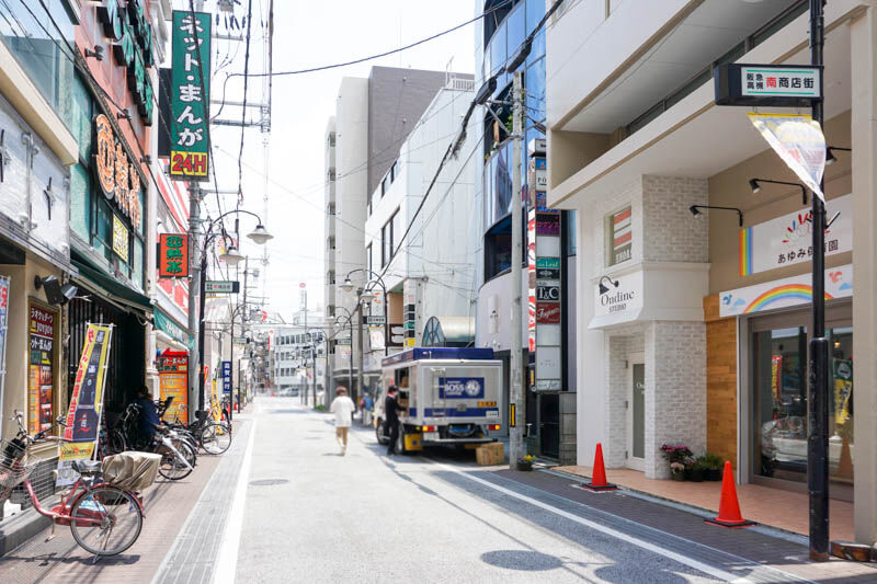 一方通行なので車などでは進めませんが、こっちに行くと、ローソンや6月8日にオープンした「Natural in the lily AfternoonTea Cafe」、コメダ珈琲店などがあり阪急高槻市駅です。