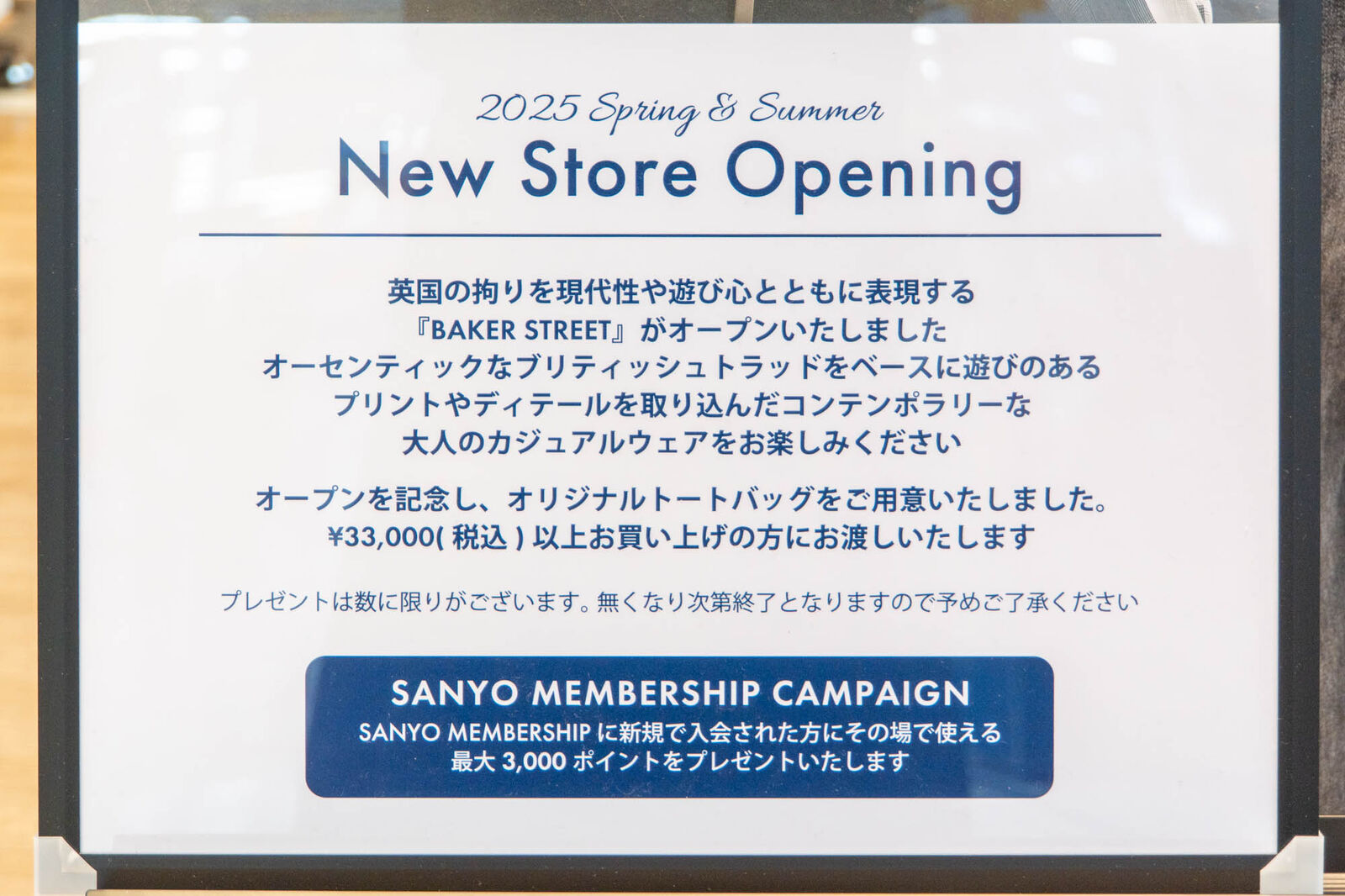 高槻阪急スクエアにつくってたアパレル店「BAKER STREET(ベイカー・ストリート)」がオープンしてる