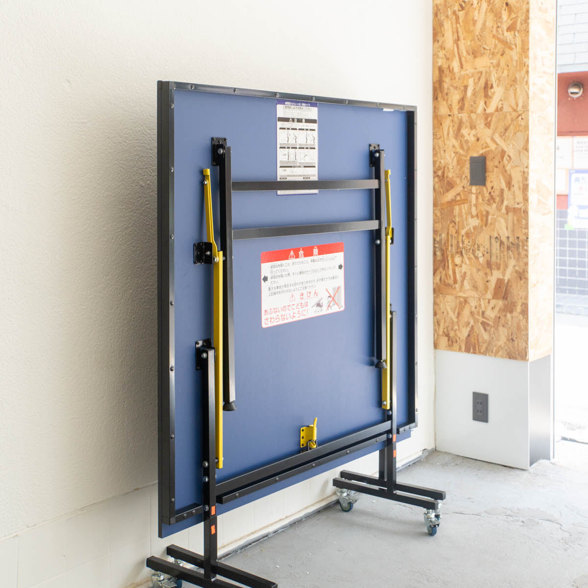 立派な卓球台。シャッターを閉めれば、玉が飛んでいく心配もないですね!