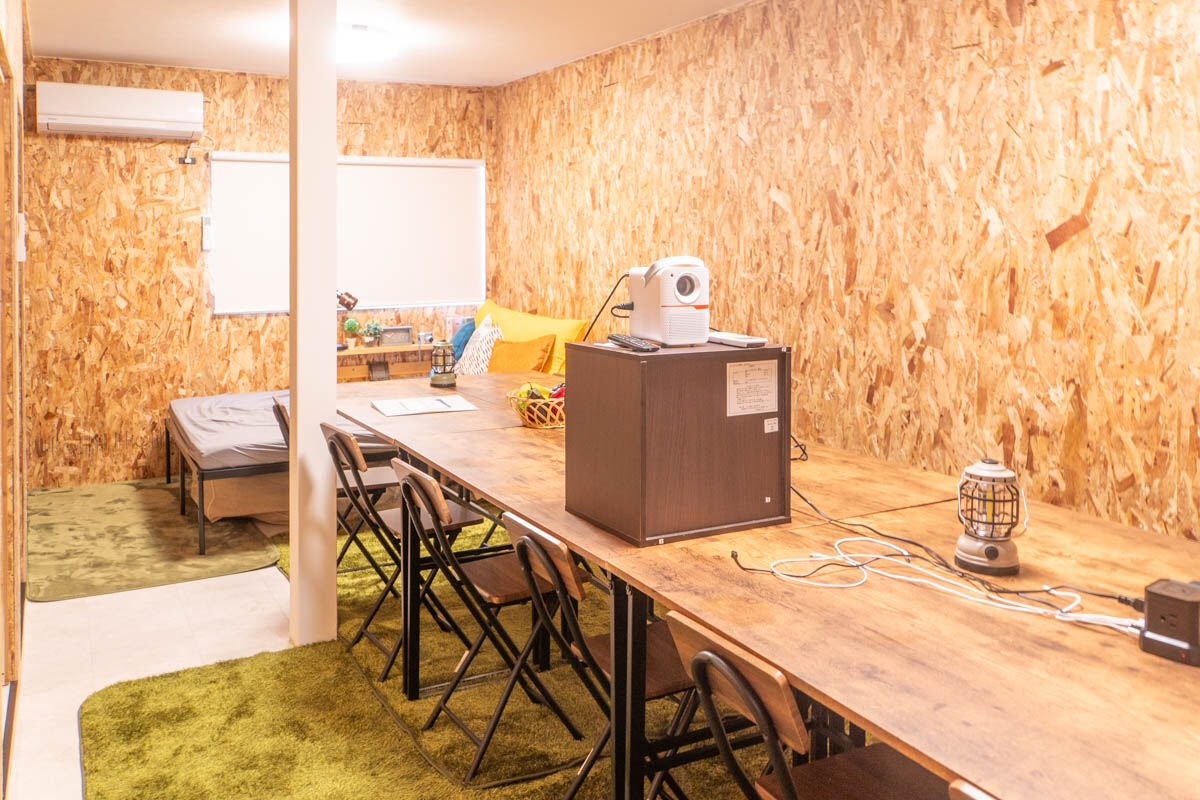 大きなダイニングセットがあるので、大人数でも一緒に楽しめそう!大人の秘密基地という感じの雰囲気も素敵。