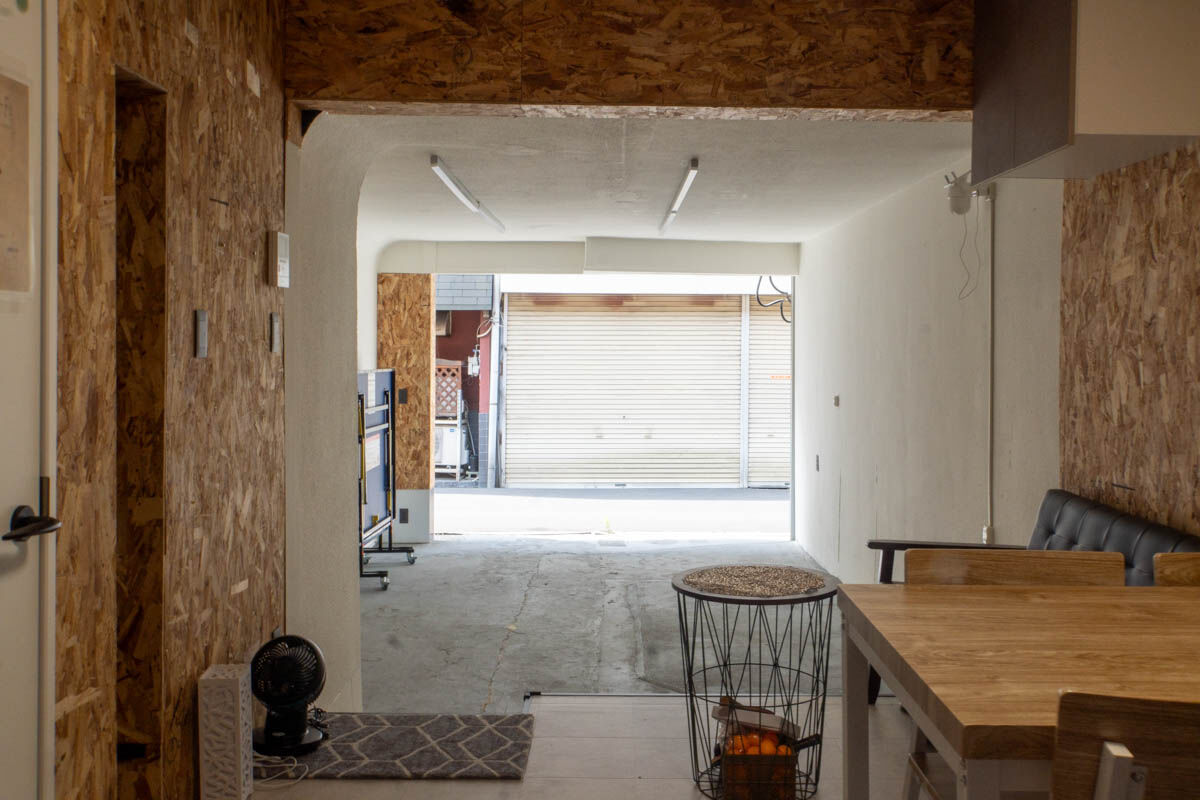 シャッターを開けるとガレージがあるので駐車場として使用もできますが、卓球台を使用する場合は駐車不可とのこと。その場合近隣にコインパーキングがあります。