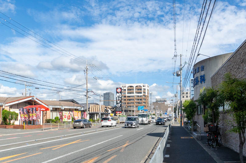 反対方向に行くと、高槻自動車教習所やドン・キホーテなどがあり枚方方面。