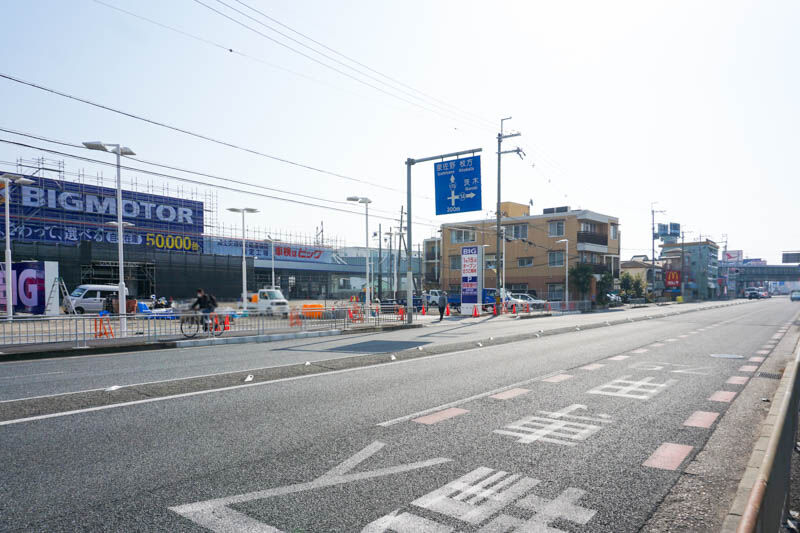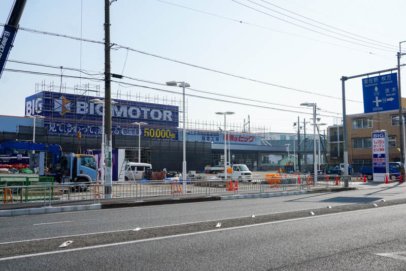 ビッグモーターは中古車買取・車査定・中古車販売・車検などを行うお店で、全国に307店舗あるそう。そのうち大阪では15店舗あり、高槻では上牧南駅前町にある高槻店が既存店でして、こちらのお店がオープンすると2店舗目になるようです。