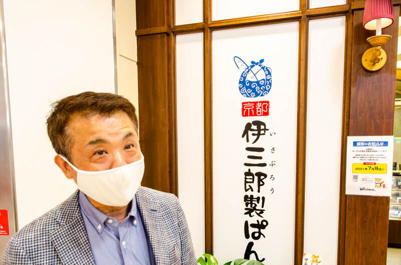 「京都伊三郎製ぱん」を運営する株式会社のぶちゃんマン=京都市中京区=の代表取締役・滝下信夫さんもオープン初日に来店しました。