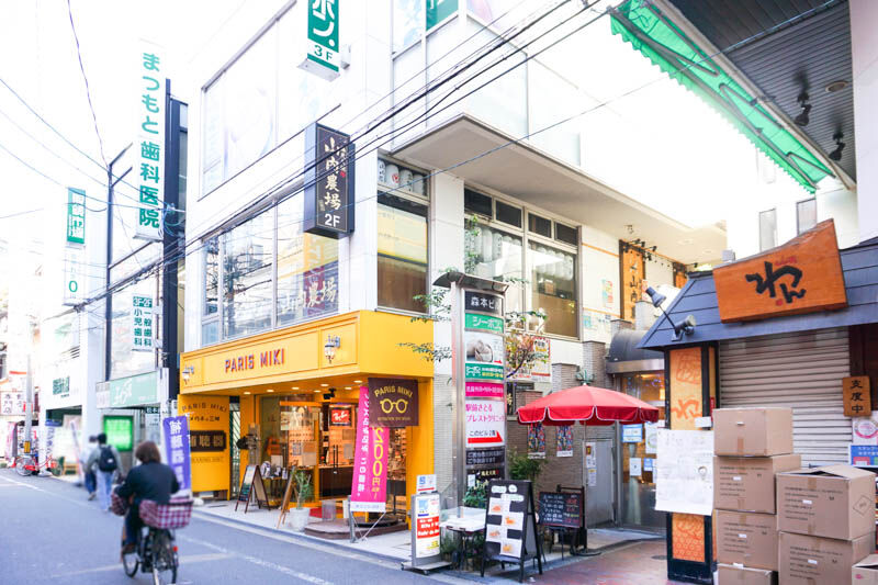 「お菓子のデパート よしや」や居酒屋「わん」が入っているビルと、眼鏡店「PARIS MIKI」があるビルの間の通路を入ったところに入口があります。