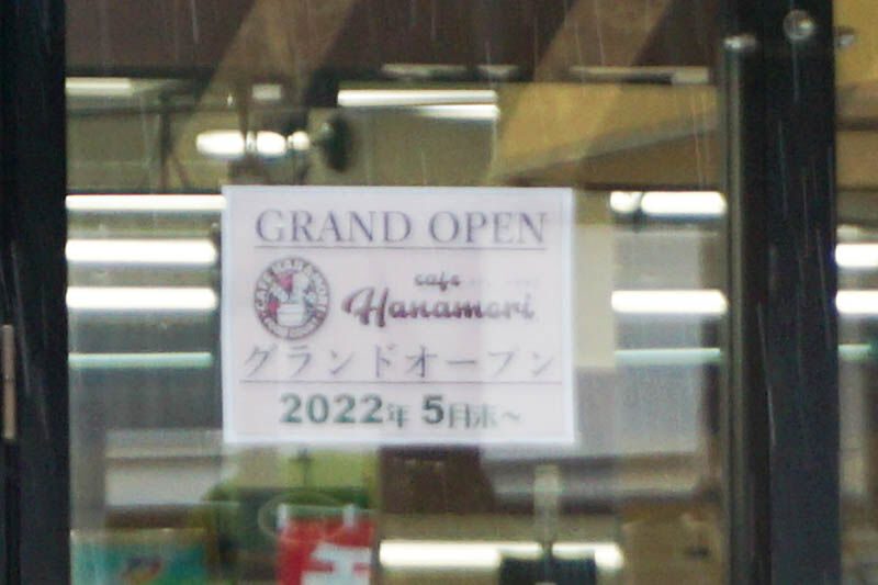 なにか貼紙があって、近くまで行ってみると「Cafe Hanamori」が5月末にオープンするということが書いてありました。