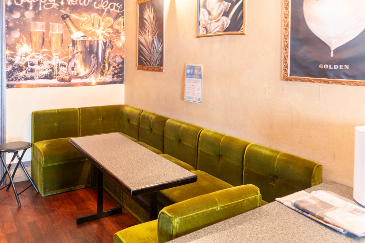 店内にはカウンター席と立派なソファ席がありました。