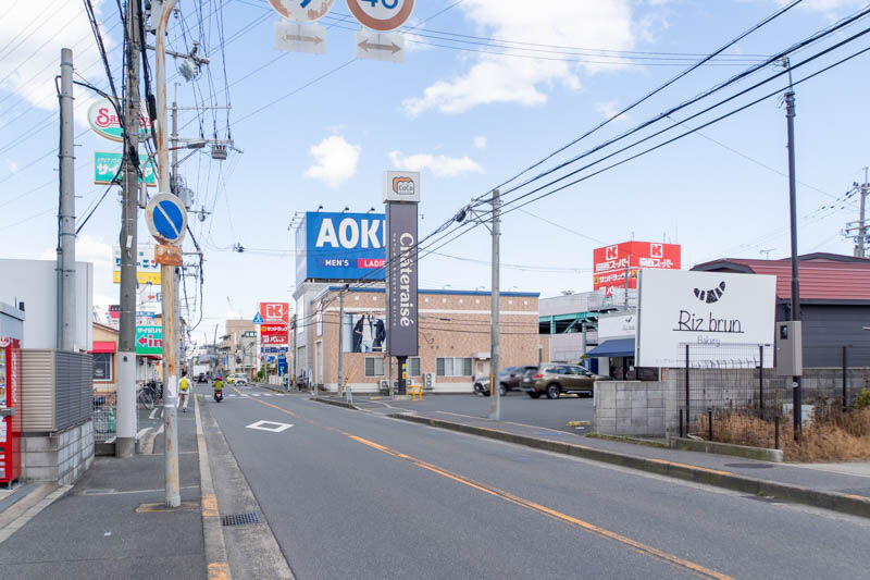 反対方向に行くと、関西スーパーやスギドラッグなどがあり、府道14号線へ。