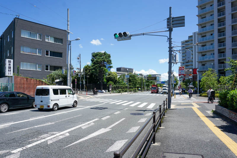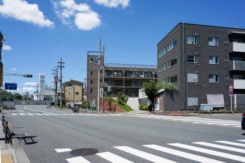 マンションの前は国道171号線で、こっちに行くと結婚式場マリアージュがあって、高槻中央郵便局やくら寿司などがある方へ。