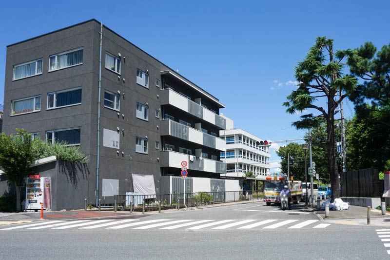 この写真でみると右側、マンションの向かいは桃園小学校。