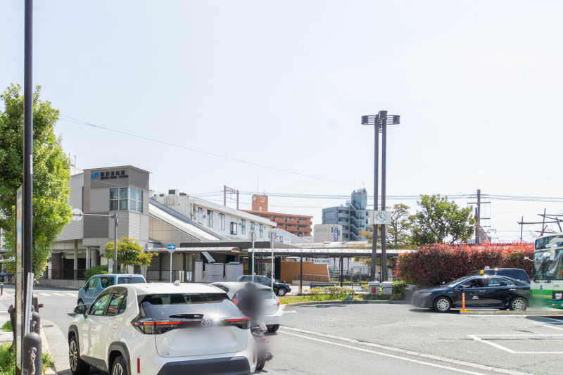 建物に背を向けると、JR摂津富田駅北口のロータリーです。