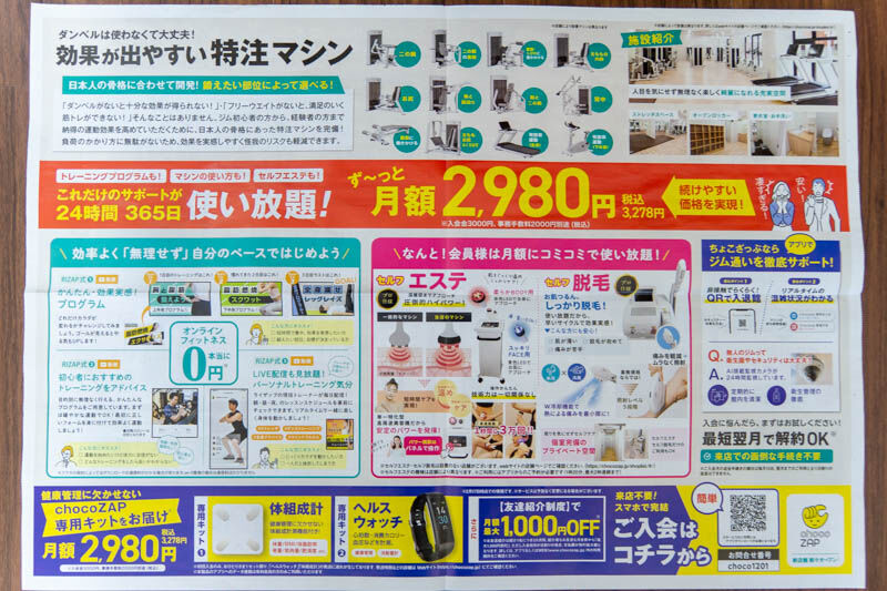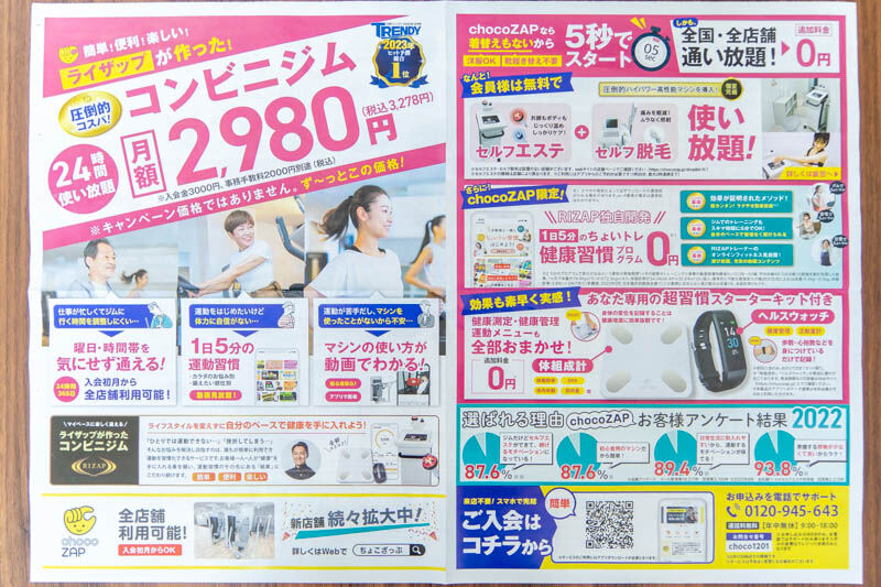 「chocoZAP」はあの大変身のCMでおなじみの『ライザップ』が作った24時間365日利用できるコンビニジム。