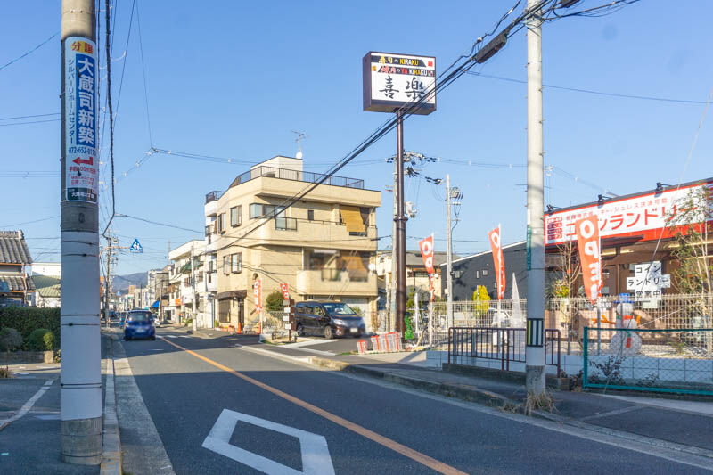 反対方向に行くと、2021年8月にオープンした「政やのたこ焼き」があり、そのままずっと進むと府道6号線に合流。2021年10月27日オープンの「ドラッグユタカ 高槻松が丘店」などがあります。