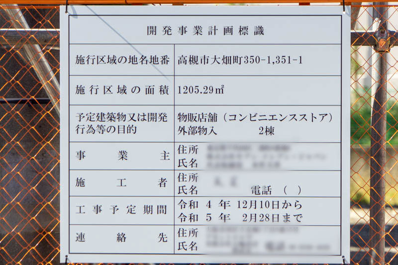 高槻市内ではコンビニができる予定地の情報が続いていますね。