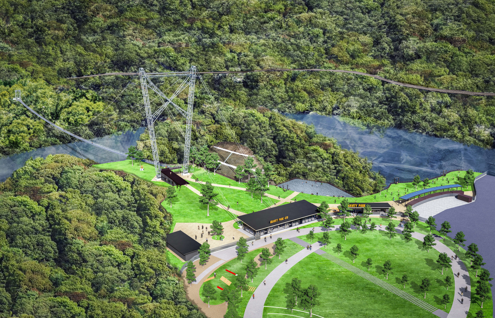 この吊り橋は民間事業者が建設・管理する民間施設で、歩行者専用吊り橋(人道橋)としては日本最長の420メートルとなる予定とのこと。