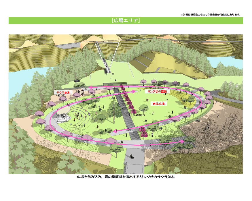 この公園には、広大な原っぱやせせらぎ水路等を整備しており、さまざまな年齢層が楽しめる施設となる予定とのこと。
