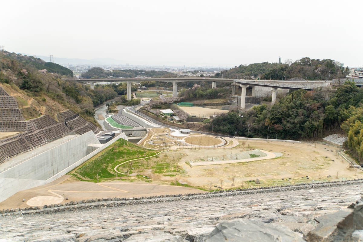 またダム天端道路(歩道)なども開通していましたので、こちらは写真で紹介したいと思います。ちなみに安威川ダムや周辺施設「ダムパークいばきた」については今までにも何度か記事に。