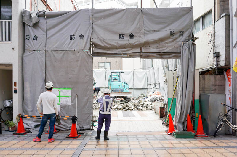 高槻センター街のタイ料理店「ディーディー」の建物が解体されてる。改装後に再開予定