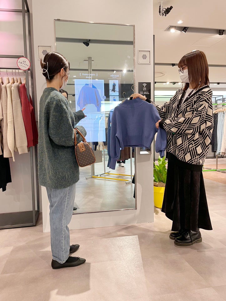 またこちらの鏡には、公式WEBストアの購入履歴をミラーに表示しながら、既にもっているものにマッチするアイテムをアドバイスしてくれるんだとか。