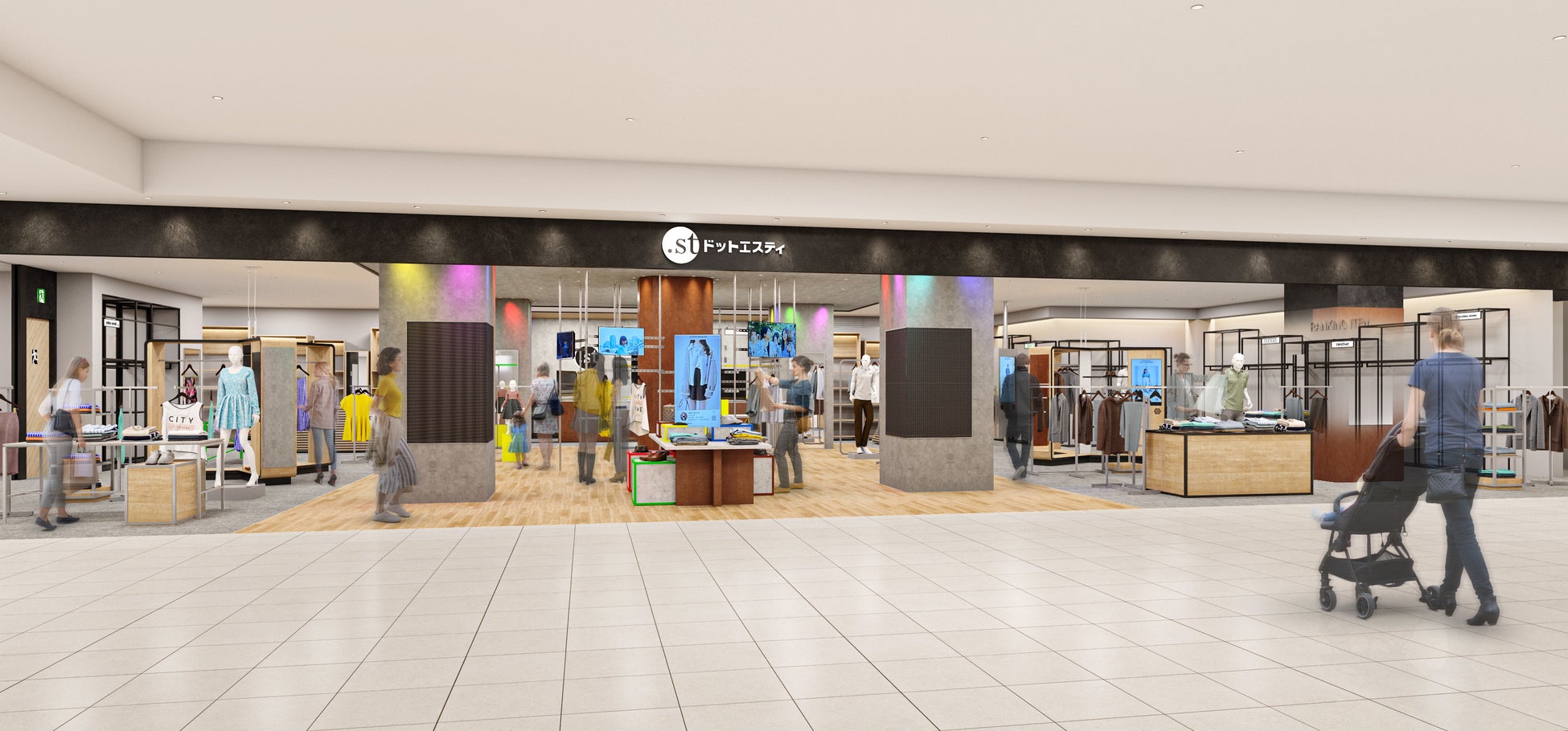 『ドットエスティストア』は、「GLOBAL WORK」「niko and...」「JEANASIS」「LAKOLE」「レイジブルー」など30以上のブランドが集結した、アダストリアグループ公式WEBストア 「ドットエスティ」と実店舗のメリットを融合した店舗とのこと。