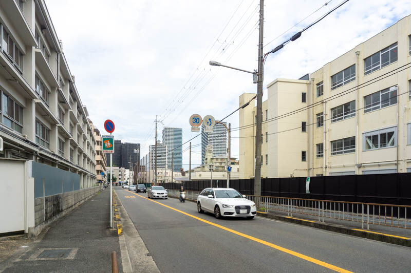 こっちに行って、交差点を右に行くとアルプラザやJR高槻駅へ続く道。