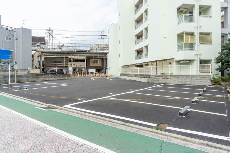 ちらっとみえる看板の値段表記や、駐車場にロックがないとこを見ると、車とバイクは月極なんじゃないかな〜と思います。