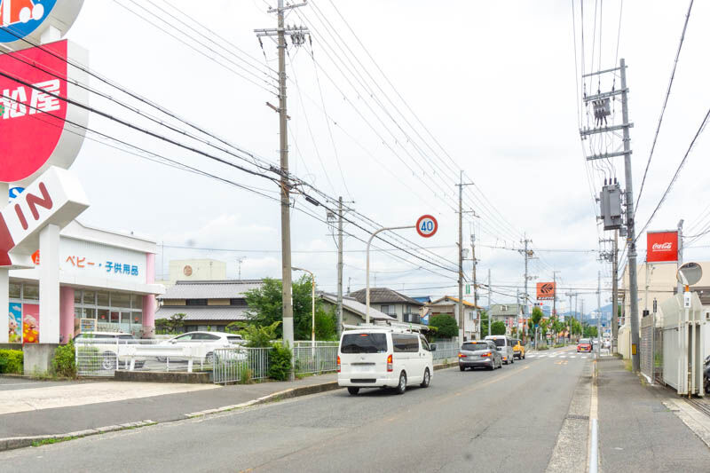 振り返って撮影するとこんな感じ。右側に2枚前の写真に写っていた西松屋が見えています。