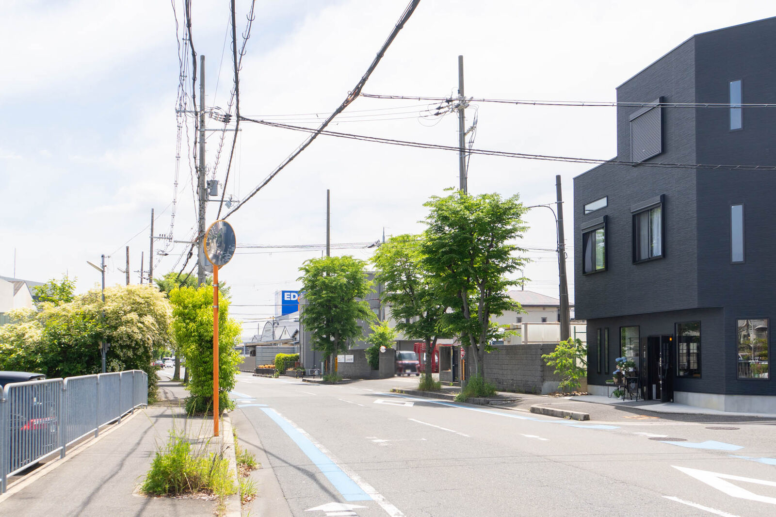 反対方向に行くと、駐車場のシステム変更が予定されているエディオンや万代、コーナンなどがある国道171号線との交差点へ。