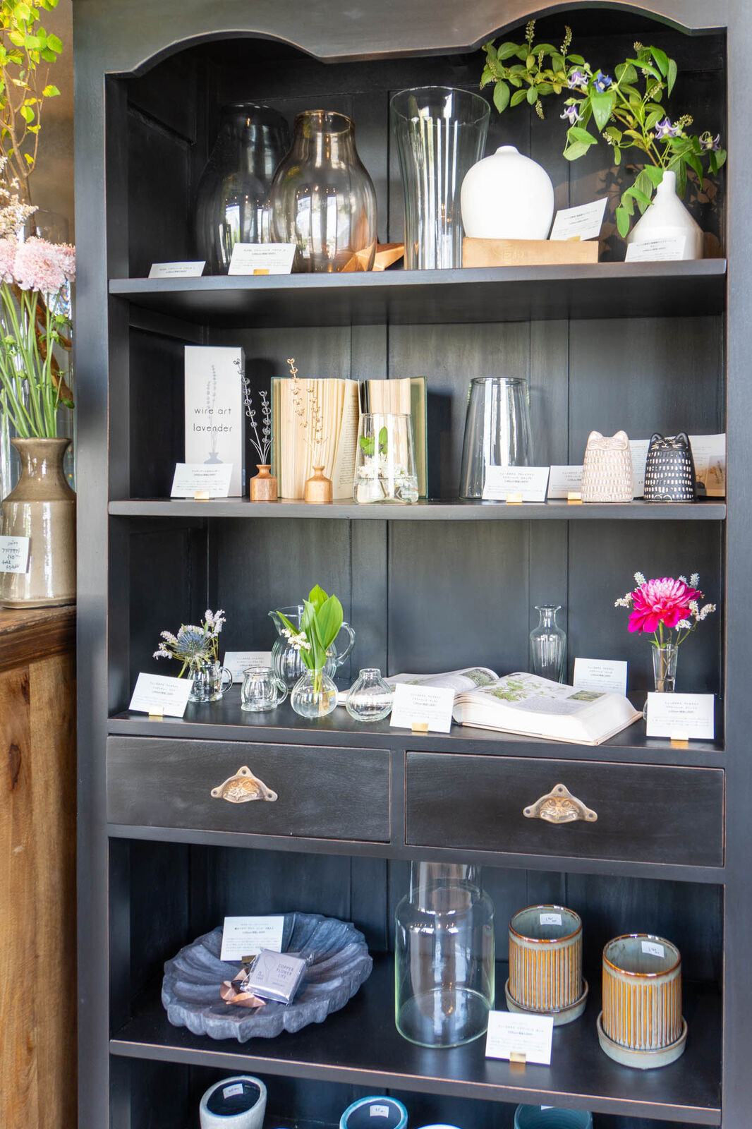 店内奥にはフラワーベースも。