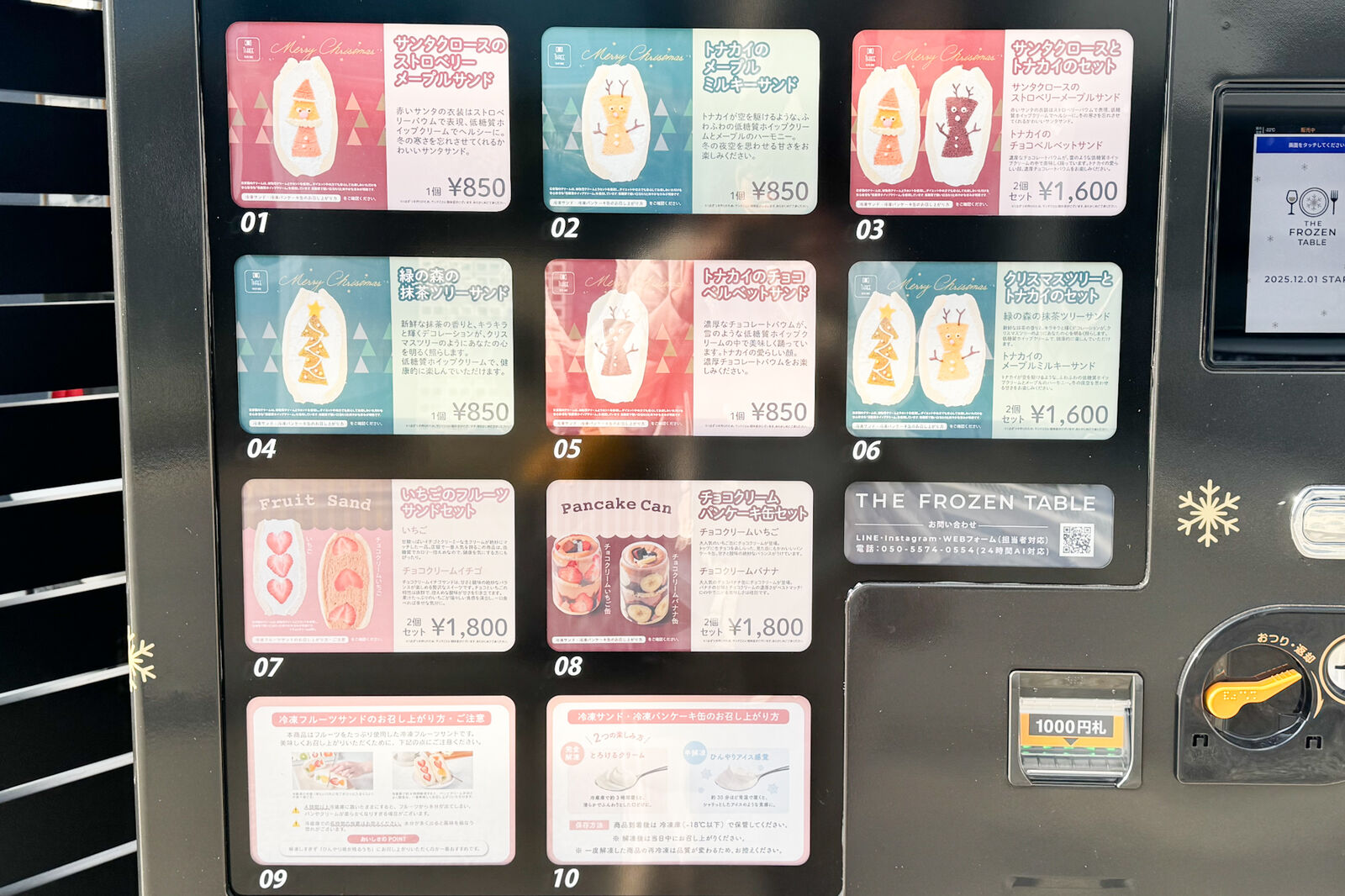 「THE FROZEN TABLE(→公式サイト)」はスイーツや季節商品・イベント商品・メイン料理などの冷凍品を定期的に入れ替えて提供する冷凍自動販売機。
