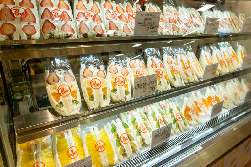 許可をもらって撮影させてもらいました。店内はフルーツサンドやフルーツがたくさん。