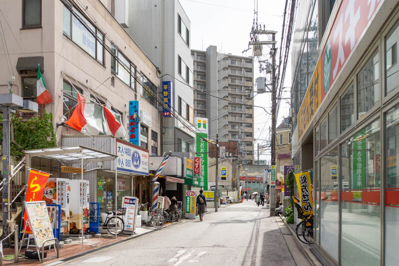 反対方向に行くと、2月に閉店した「粉もん屋八 高槻店」などがあり、阪急みずき通りへ。