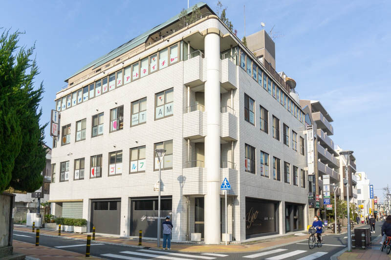 建物全体。駅と駅のちょうど真ん中にあるビルです。