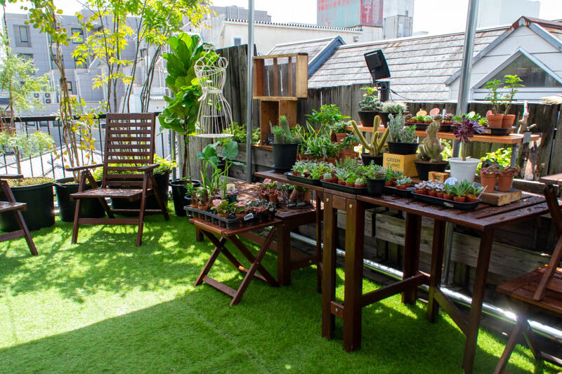 扉の向こうがテラスで「GREEN MIND」の販売スペースになっています。