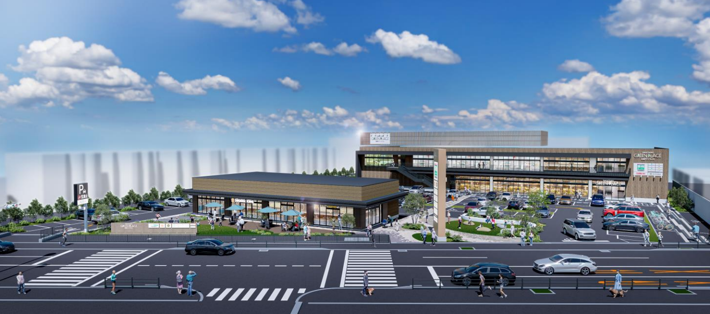 「高槻グリーンプレイス」は、デイリーユース型のスーパーマーケットを核とし、医と食のコラボをコンセプトとしたメディカルテラス、カフェ・レストラン、広々とした人工芝スペース、子どもの遊び場を設けた商業施設だそう。